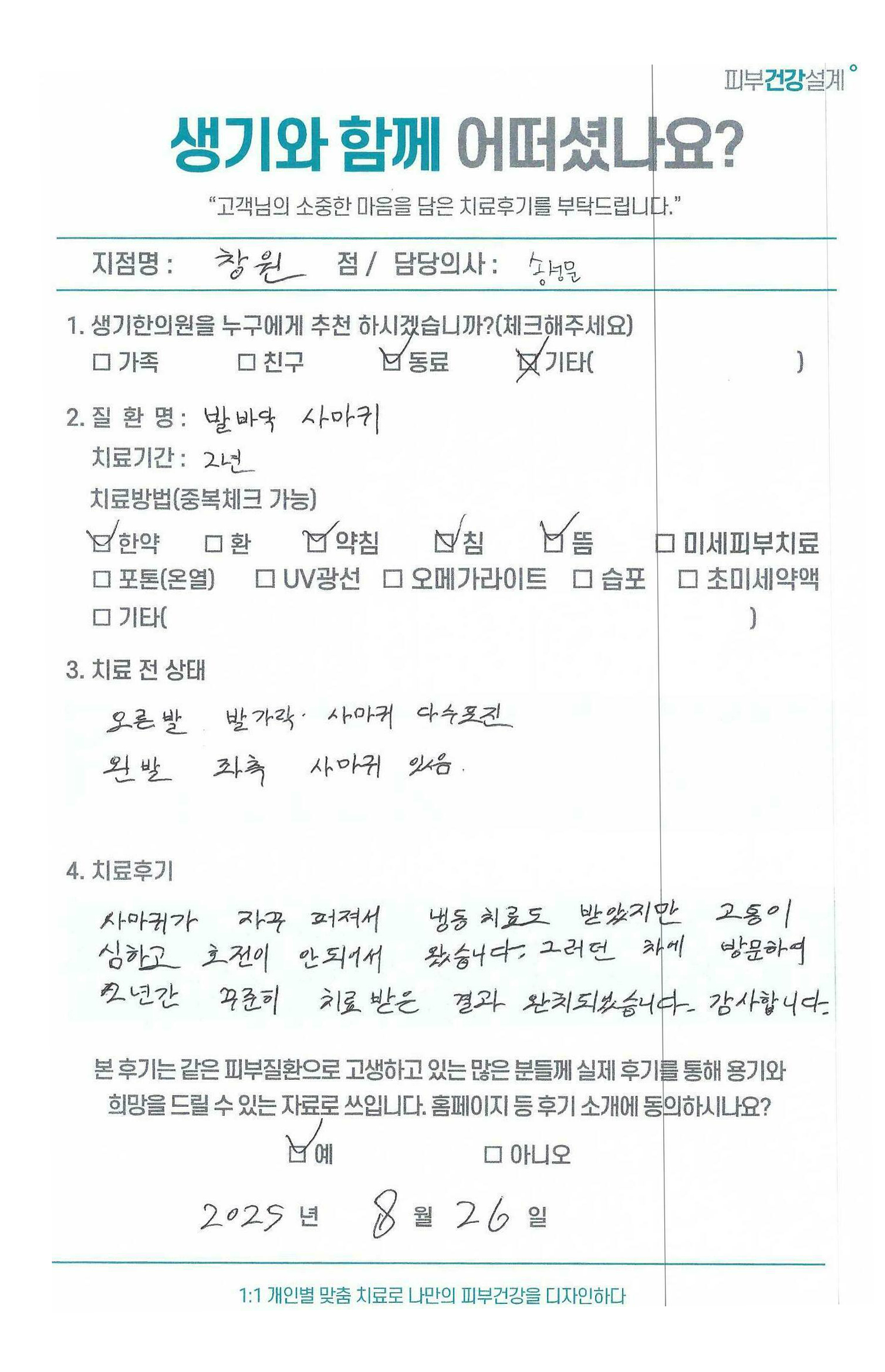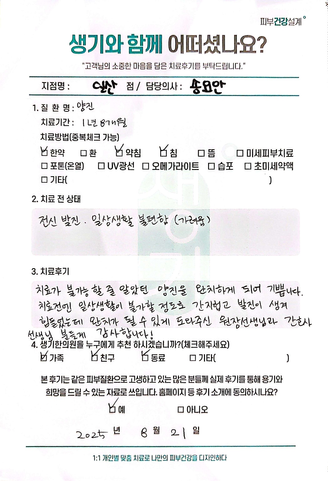 생기한의원과 함께하신 생생한 자필 및 영상 후기를 소개합니다.