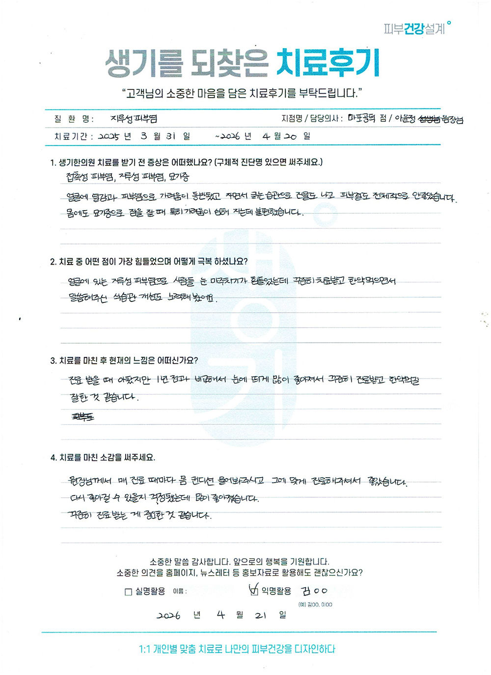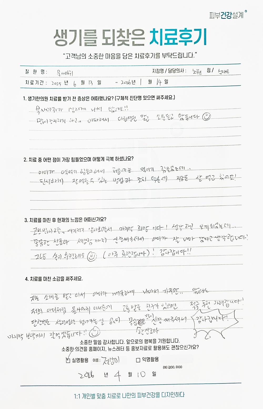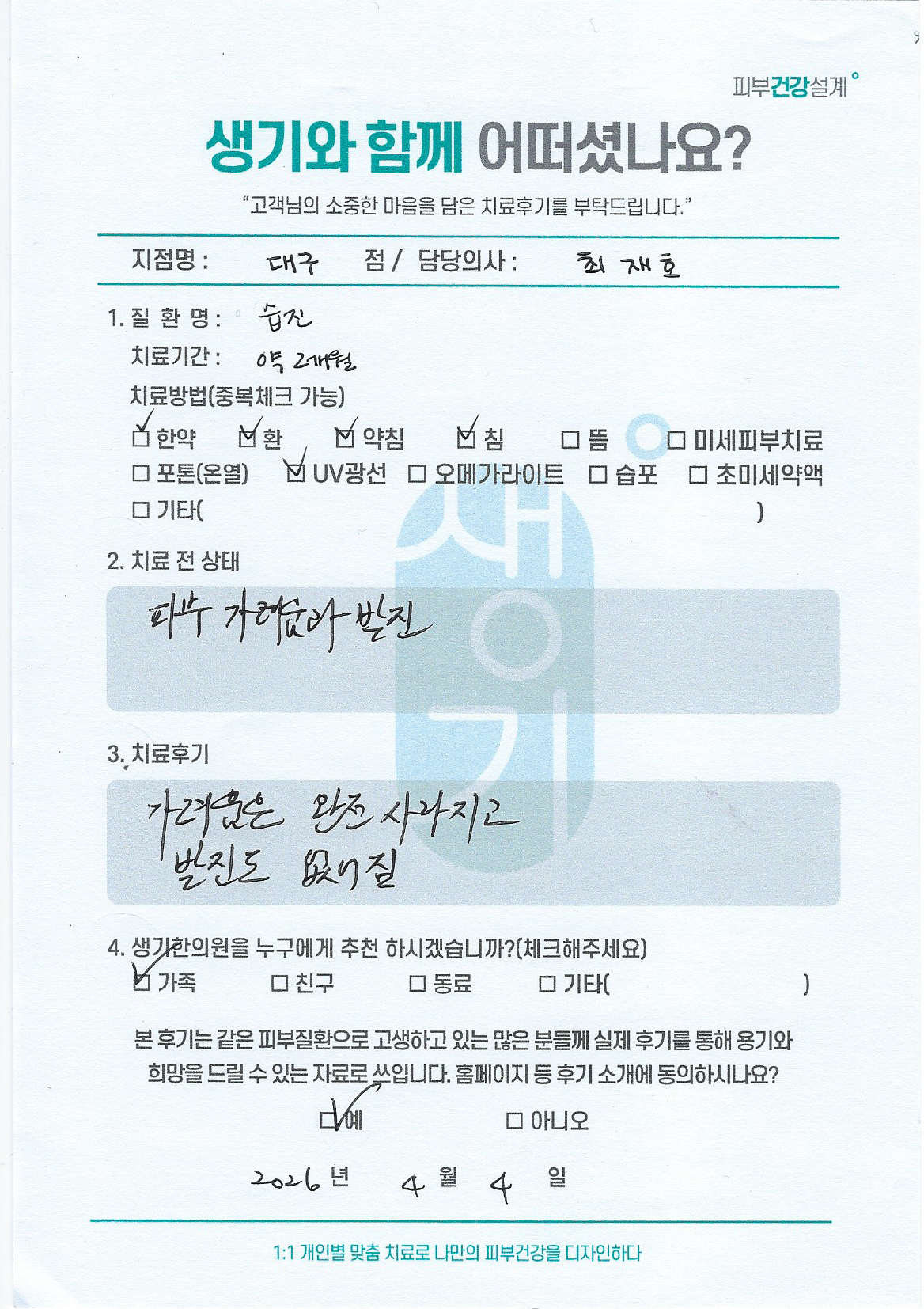 생기한의원과 함께하신 생생한 자필 및 영상 후기를 소개합니다.