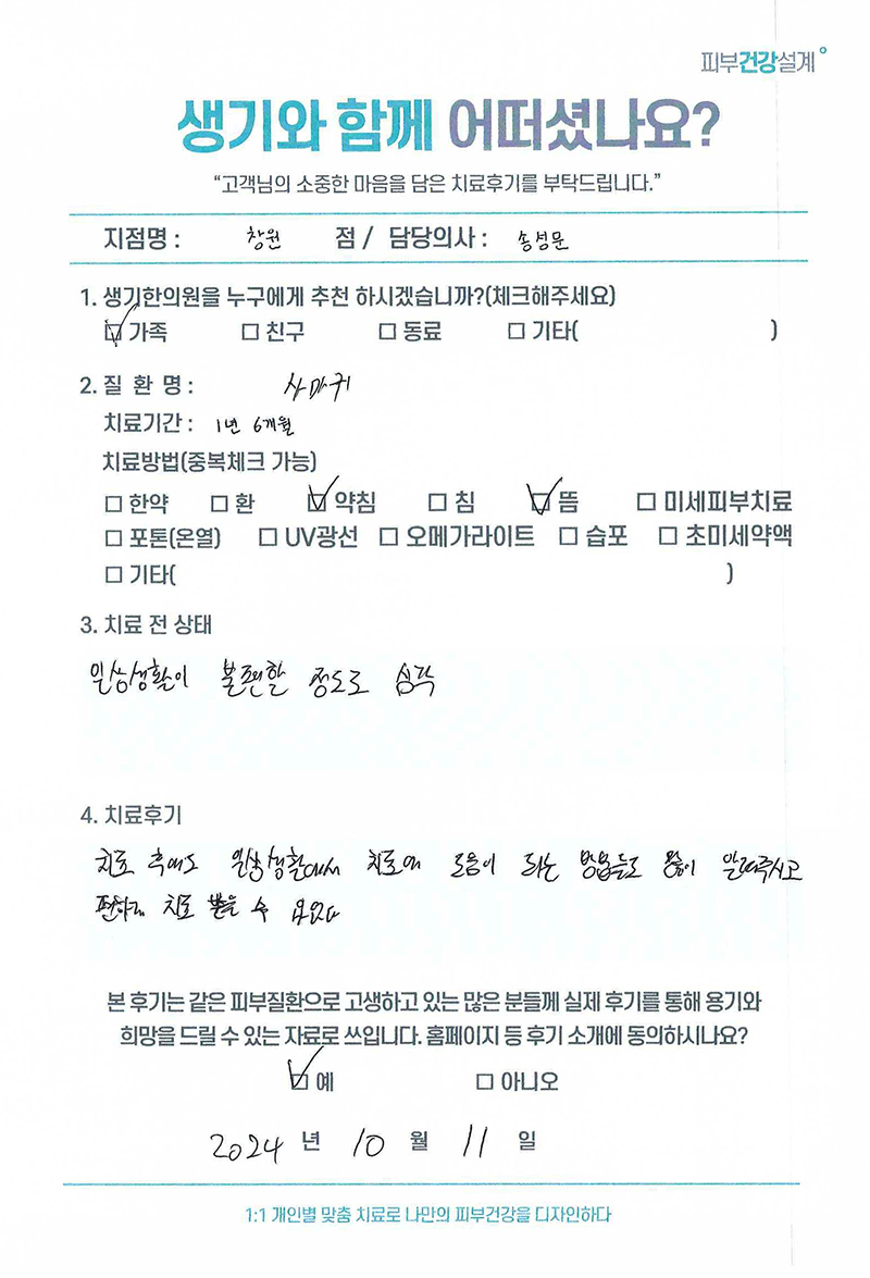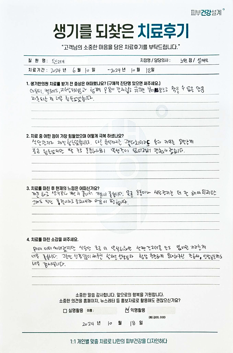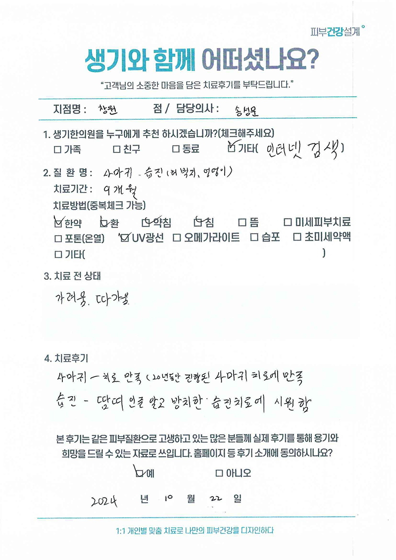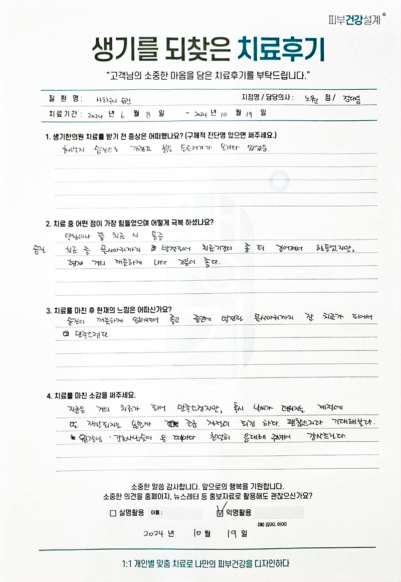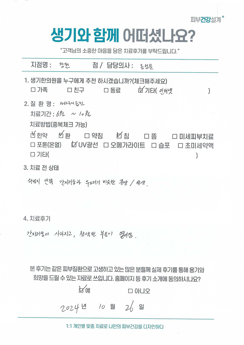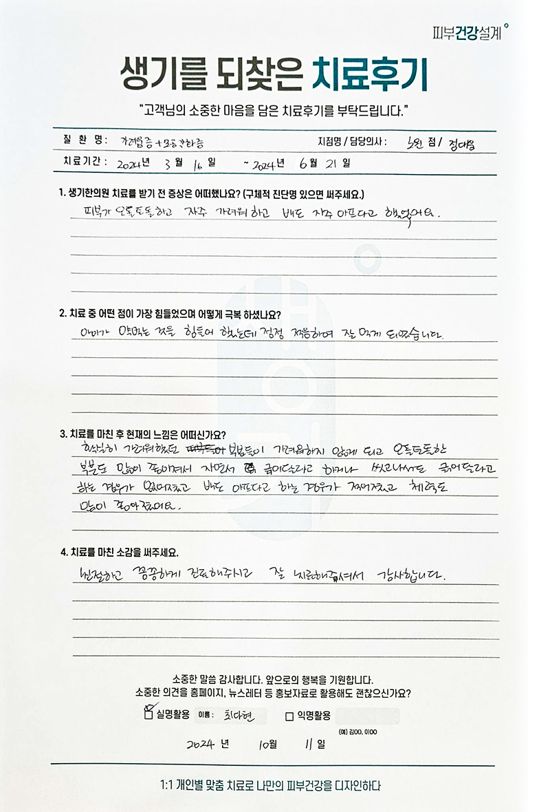생기한의원과 함께하신 생생한 자필 및 영상 후기를 소개합니다.