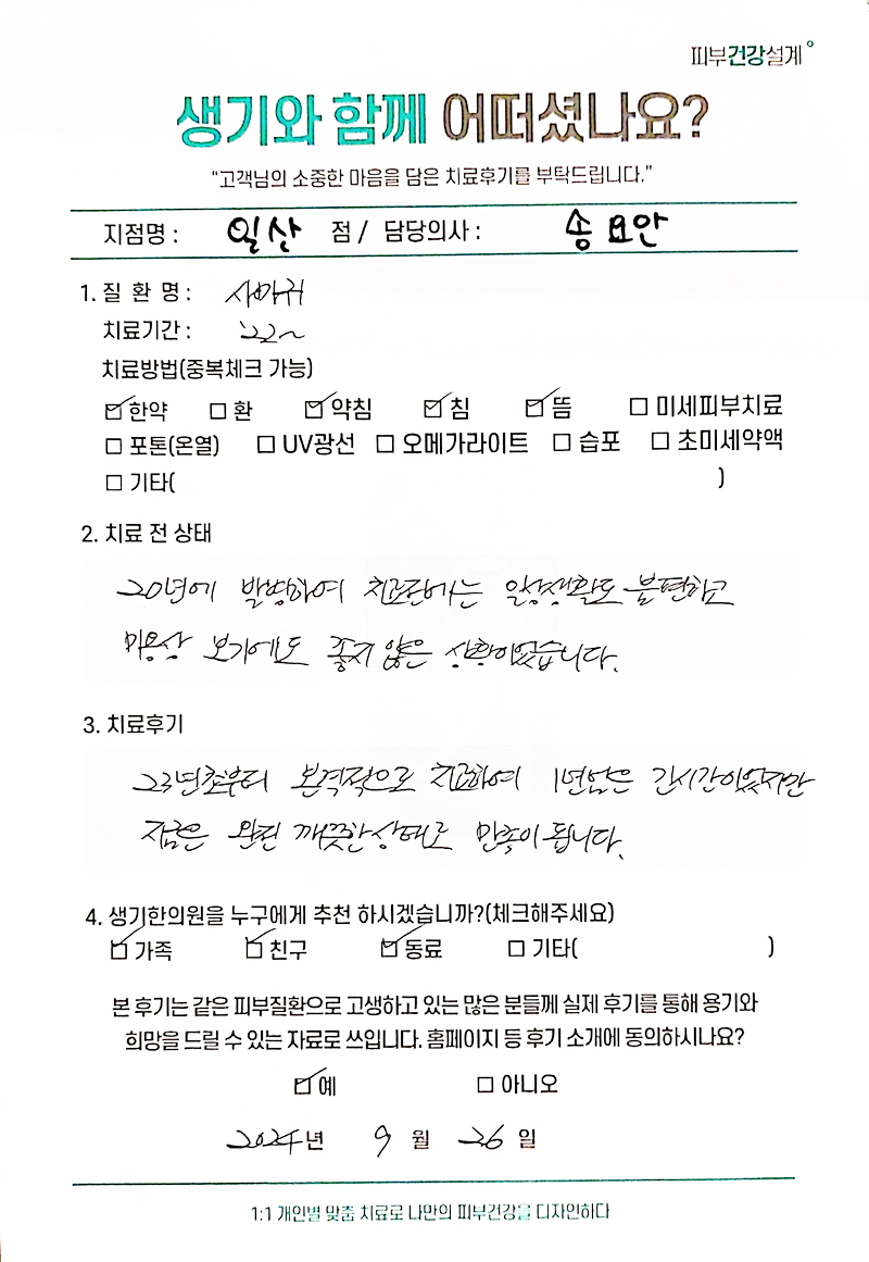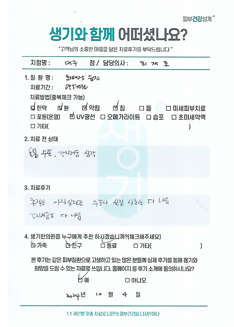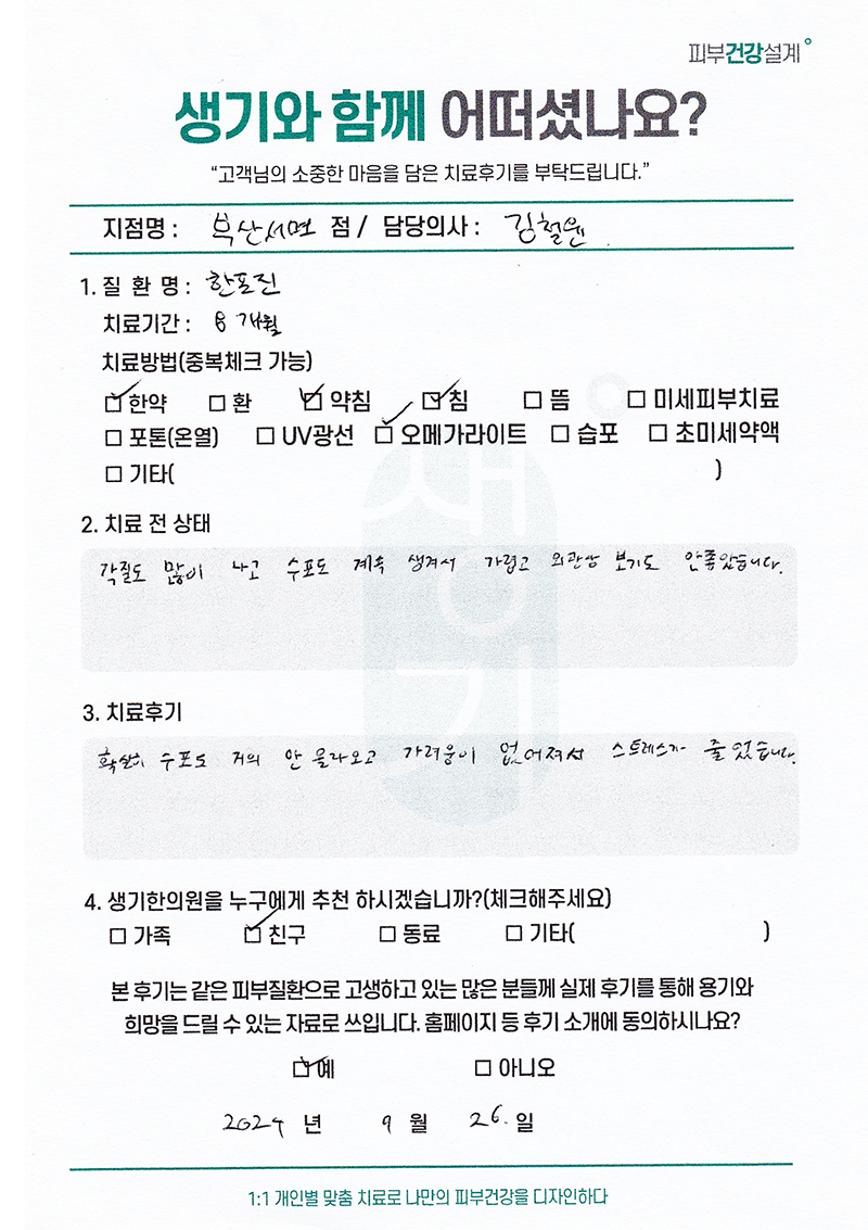 생기한의원과 함께하신 생생한 자필 및 영상 후기를 소개합니다.