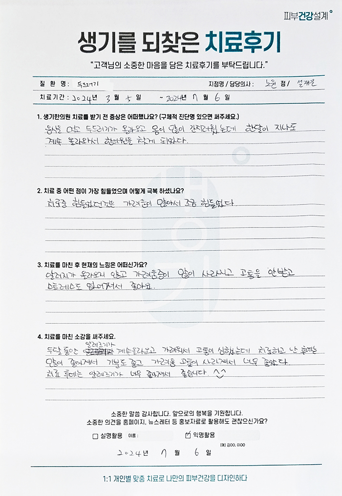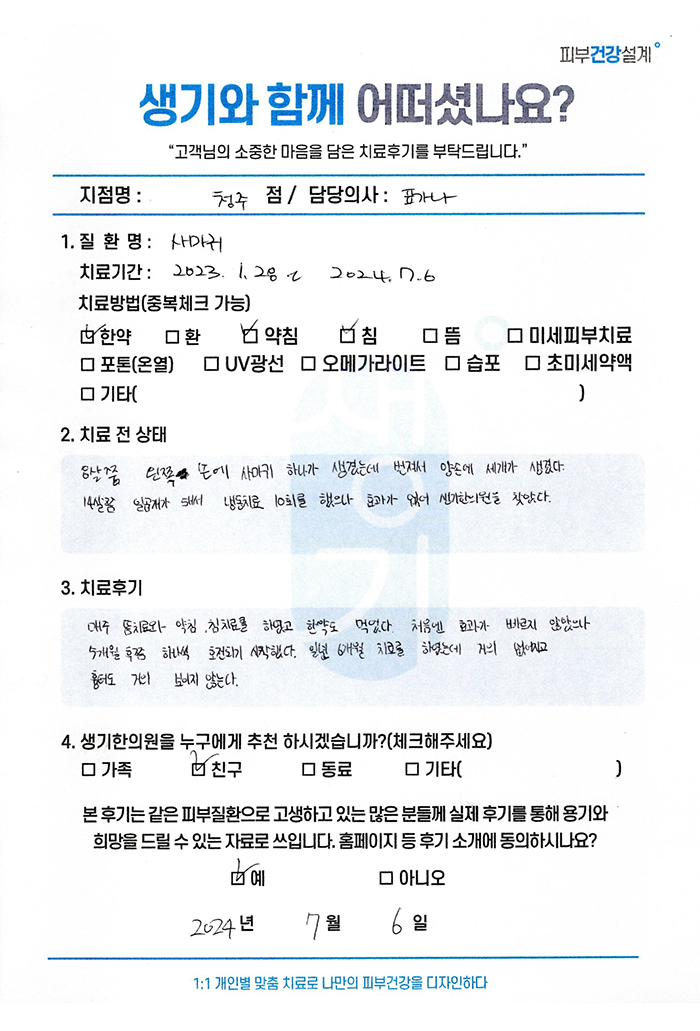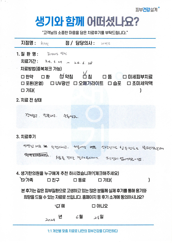 생기한의원과 함께하신 생생한 자필 및 영상 후기를 소개합니다.