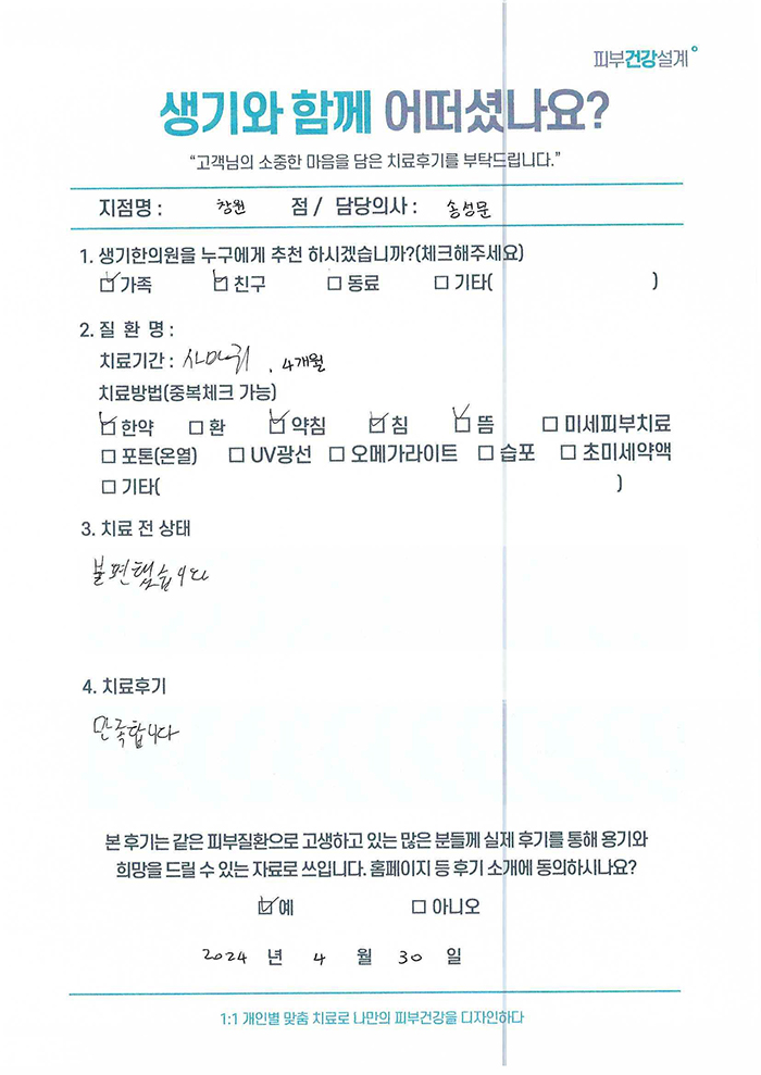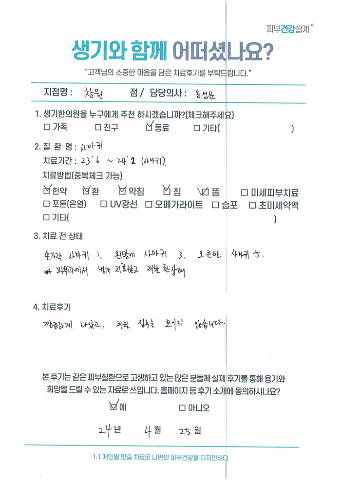 생기한의원과 함께하신 생생한 자필 및 영상 후기를 소개합니다.