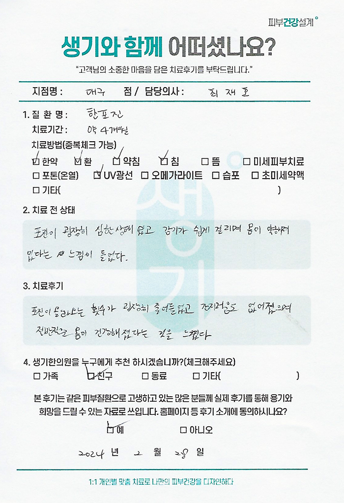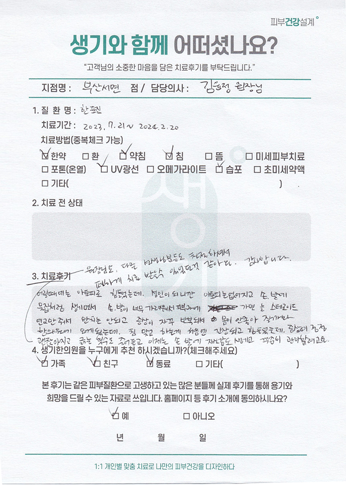 생기한의원과 함께하신 생생한 자필 및 영상 후기를 소개합니다.