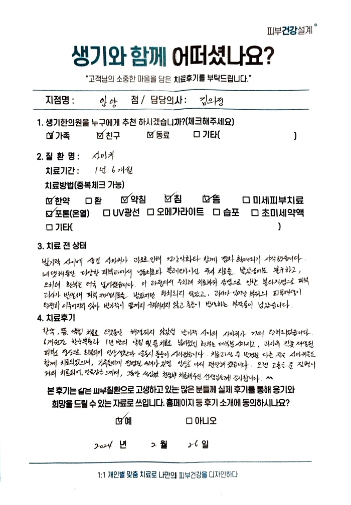 생기한의원과 함께하신 생생한 자필 및 영상 후기를 소개합니다.