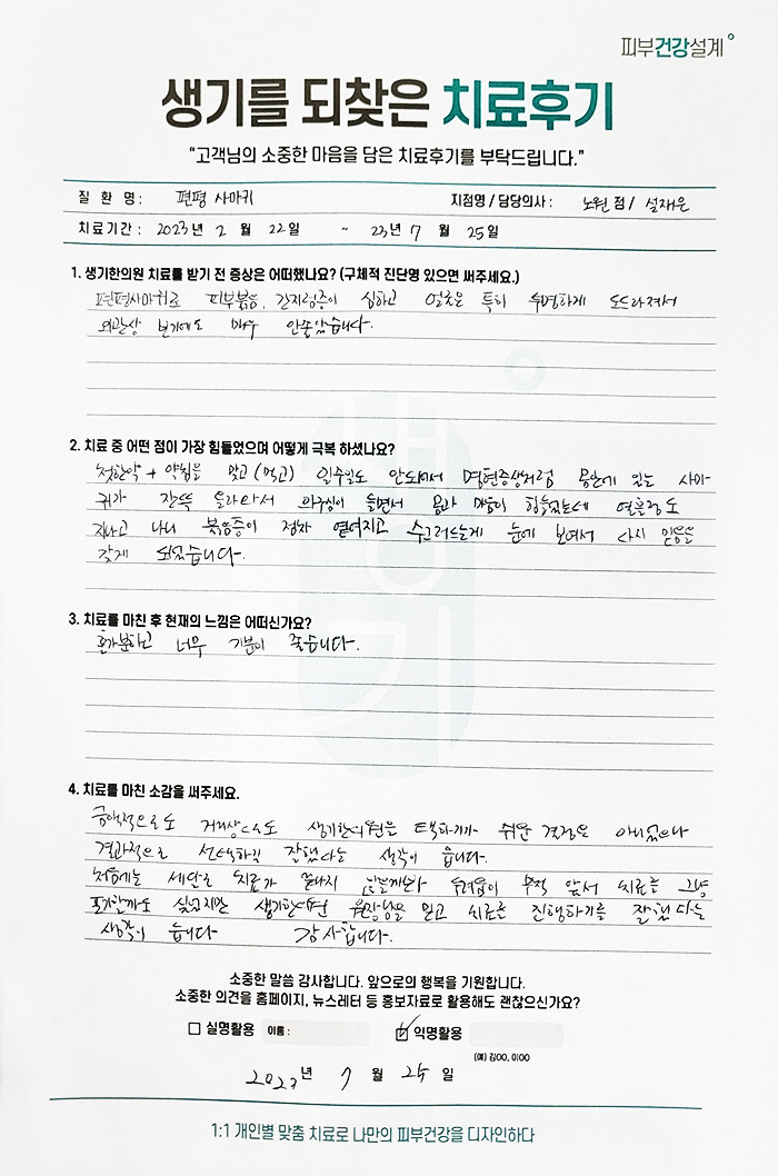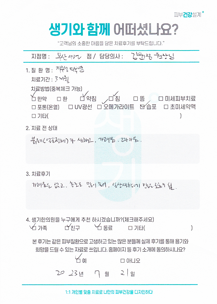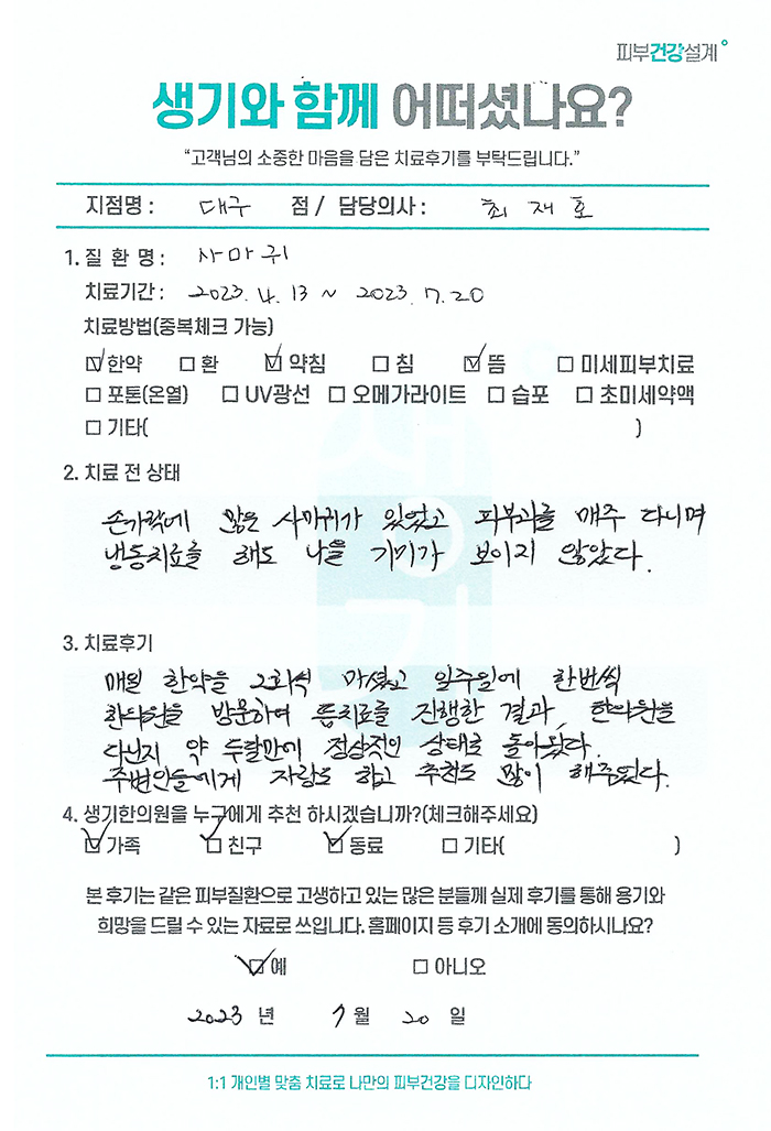 생기한의원과 함께하신 생생한 자필 및 영상 후기를 소개합니다.