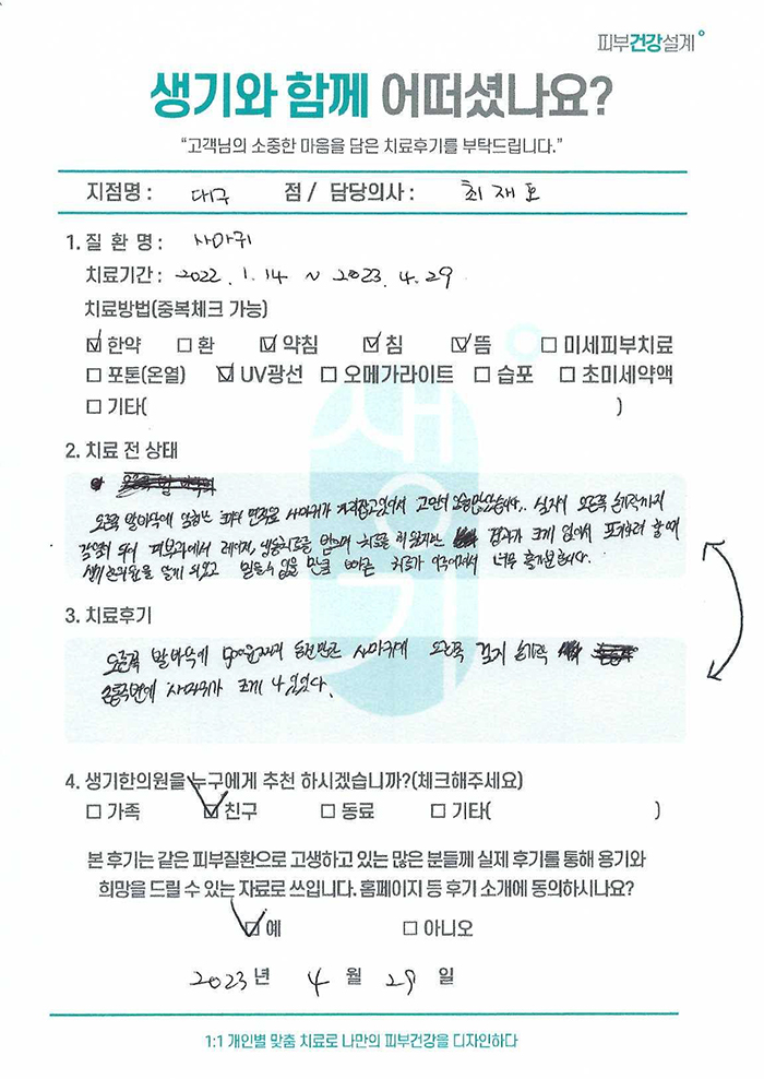 생기한의원과 함께하신 생생한 자필 및 영상 후기를 소개합니다.