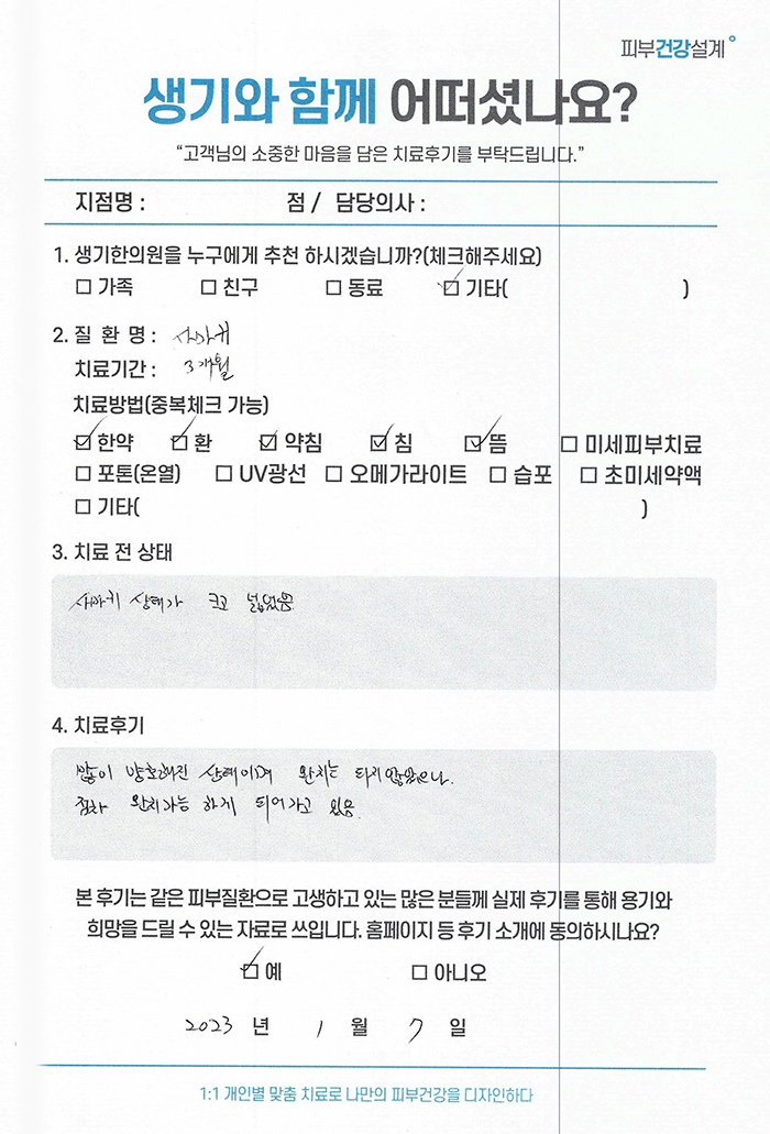 생기한의원과 함께하신 생생한 자필 및 영상 후기를 소개합니다.