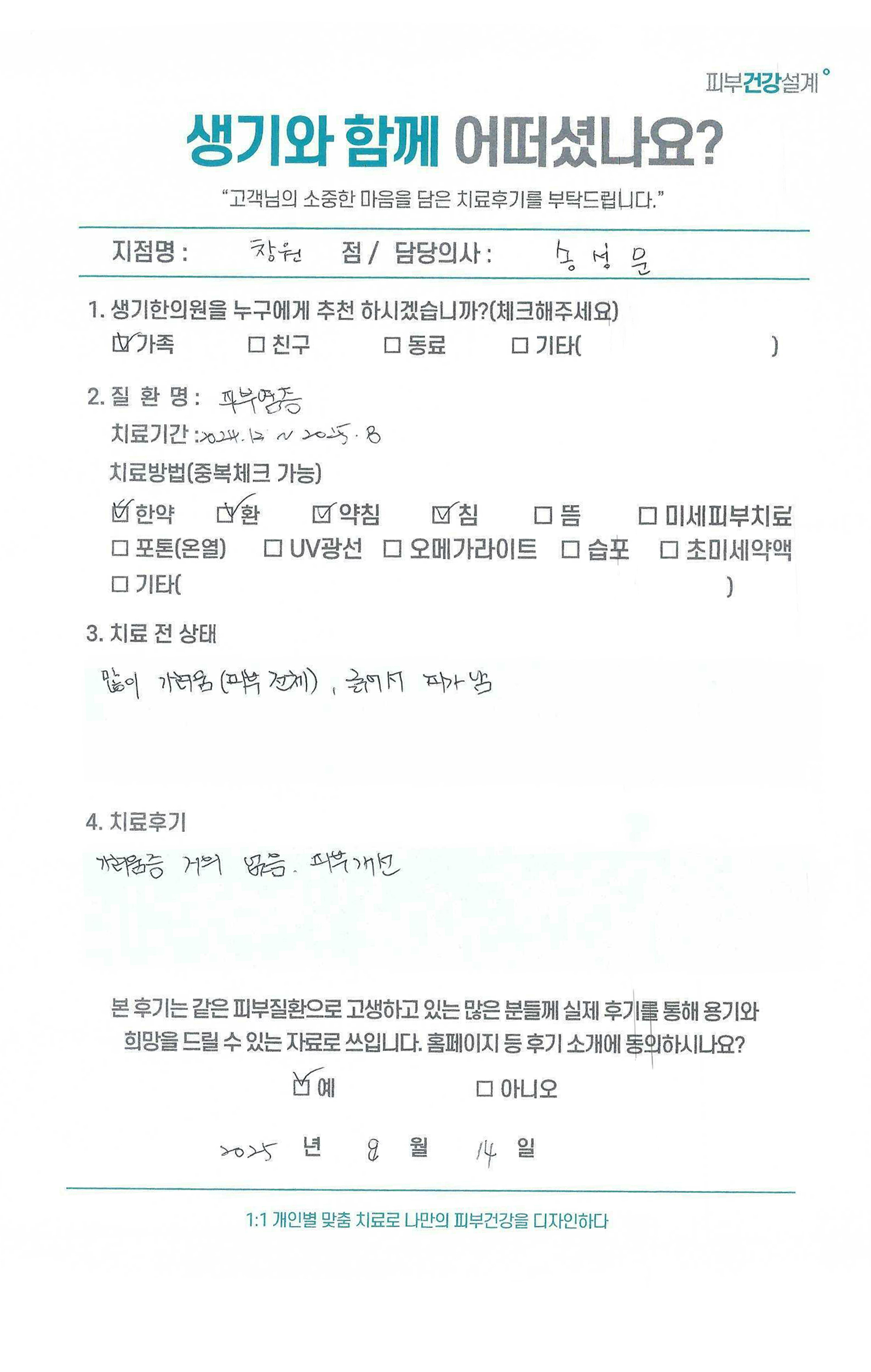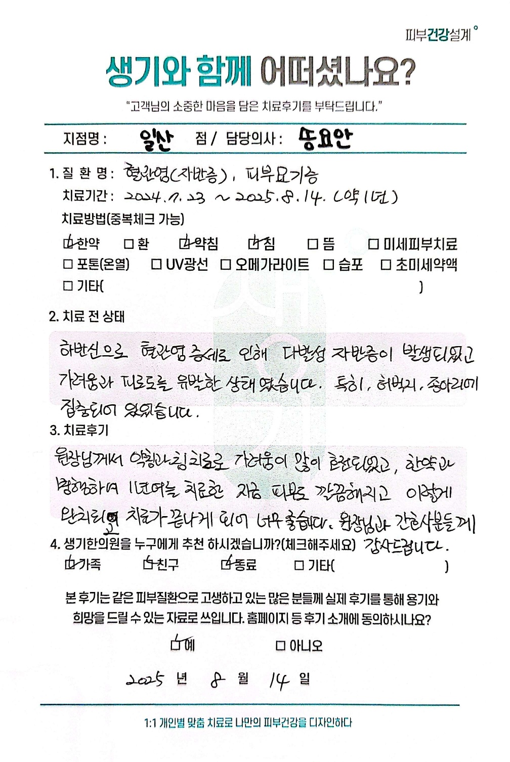 생기한의원과 함께하신 생생한 자필 및 영상 후기를 소개합니다.