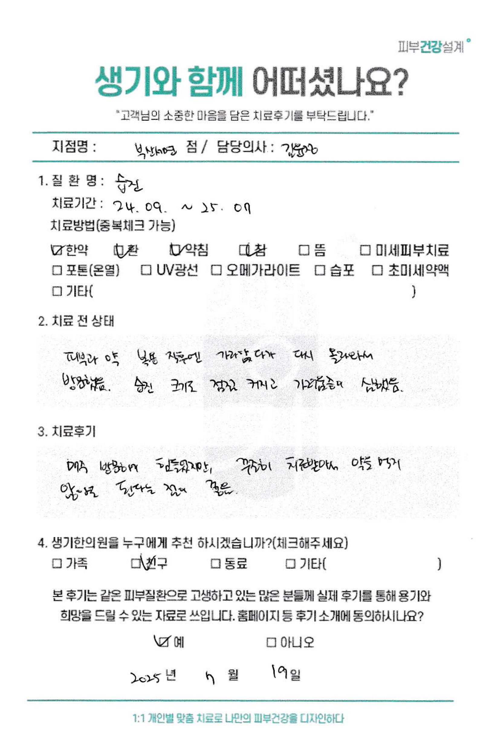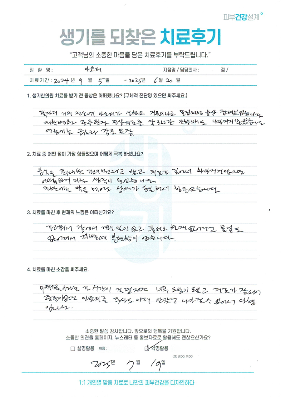 생기한의원과 함께하신 생생한 자필 및 영상 후기를 소개합니다.